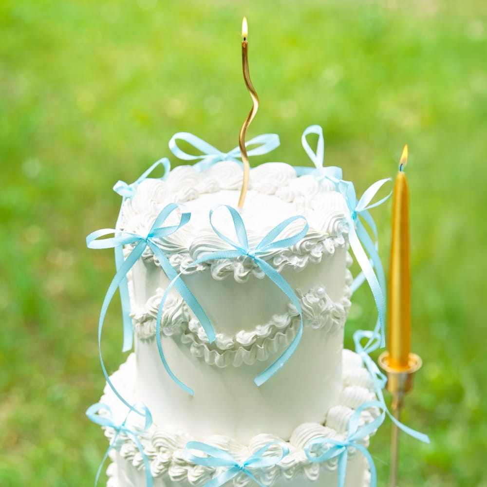 Topper na tort w kształcie błękitnej kokardki:
