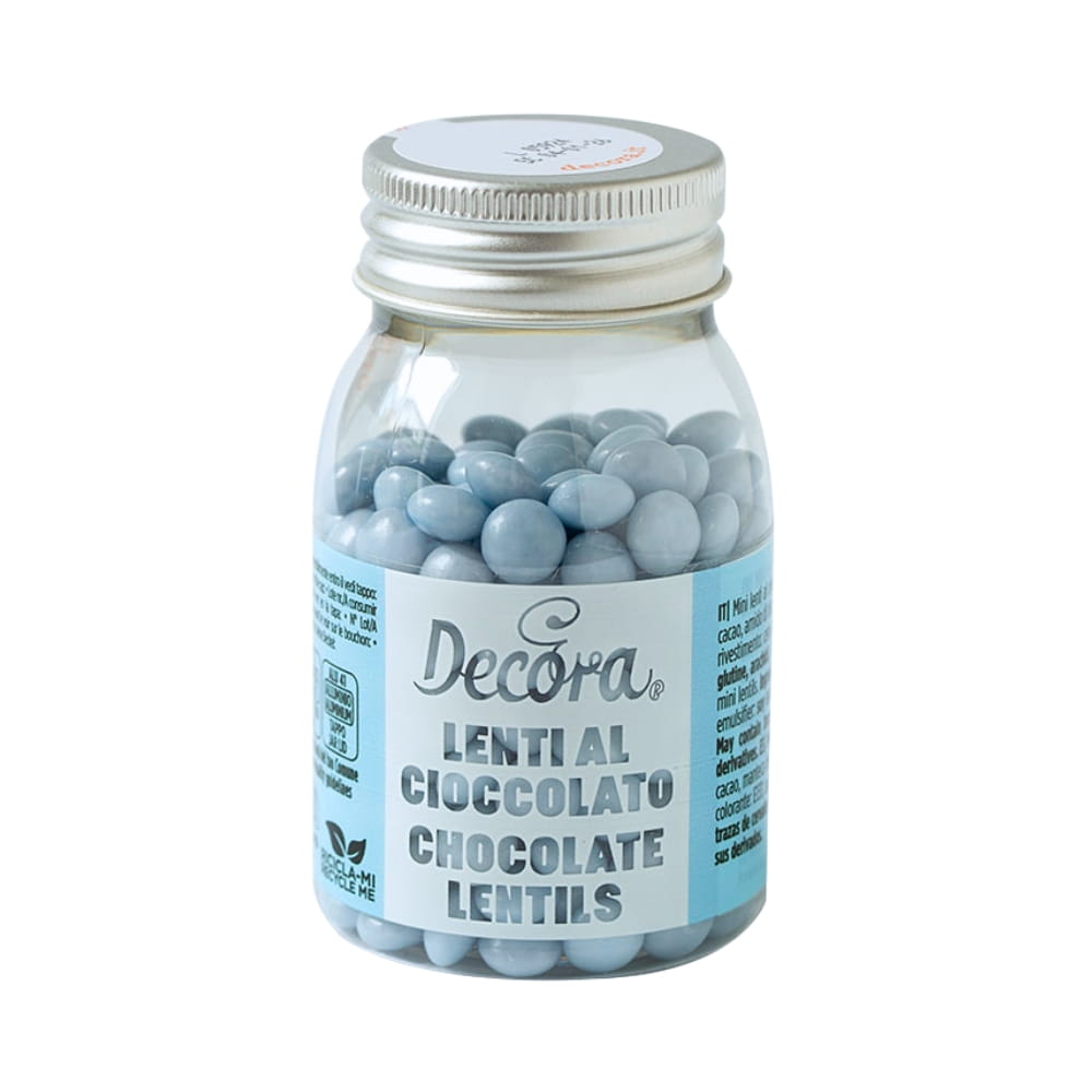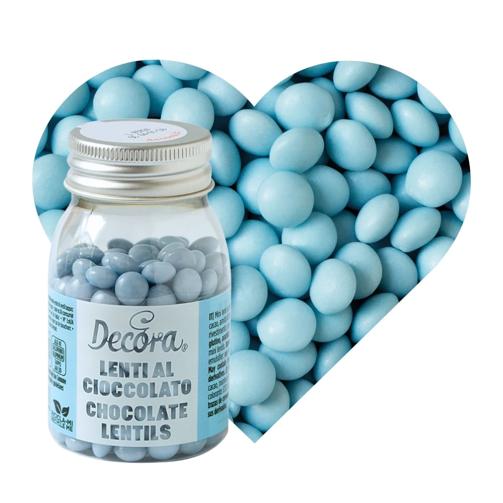 Lentilki to duże czekoladowe draże o spłaszczonym kształcie i chrupiącej cukrowej skorupce, która kryje pyszną, mleczną czekoladę. Śliczny i błyszczący turkusowy kolor. Nieregularne Leniki mają kształt soczewki i średnicę 10 mm. To doskonała posypka do deserów, napojów z bitą śmietaną, lodów, tortów, babeczek, muffinek, monoporcji, cake pops i wszelkich wypieków. Używana także jako dodatek do wypieków, głównie kruchych ciasteczek, tabliczek czekolady, ozdoba słodkich stołów. Jej niepowtarzany kształt i kolorystyka pozwalają stworzyć romantyczne cukiernicze kreacje! Idealny pomysł na baby shower.