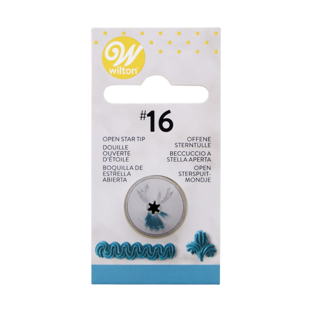 Tylka cukiernicza ze stali nierdzewnej od renomowanej marki Wilton. Może być używana ze wszystkim rękawami cukierniczymi oraz ze standardowym adapterem Wilton. Doskonale sprawdzi się do precyzyjnego dekorowania ciasteczek, babeczek, muffinków, tortów, deserów czy dań. Tylka z małą końcówką w kształcie otwartej gwiazdy do robienia gwiazdek, rozetek, szlaczków, muszelek i formowania różnorodnych kwiatów, sprawdzi się do tworzenia rantów w kształcie muszli, zygzaków, lin. Posiada 6 ząbków.