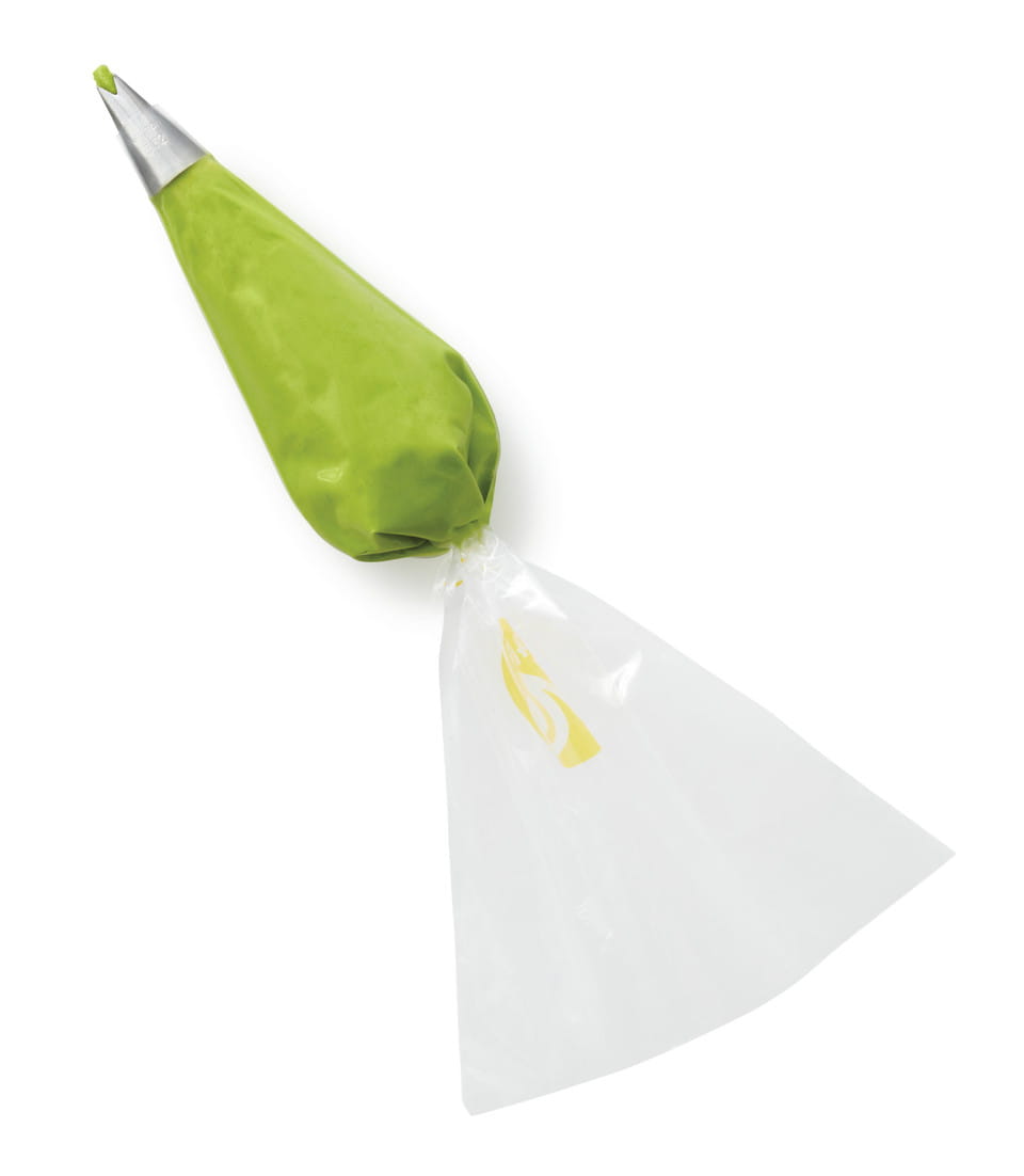 To bardzo proste! Najpierw należy wsunąć tylkę do rękawa, worka cukierniczego. Najdalej jak się tylko da. Teraz należy zaznaczyć na woreczku miejsce wyraźnie ponad wzorem — około 0,5 cm. Teraz należy wysunąć tylkę i odciąć końcówkę rękawa w miejscu zaznaczenia. Teraz wystarczy wsunąć tylkę na miejsce i gotowe!