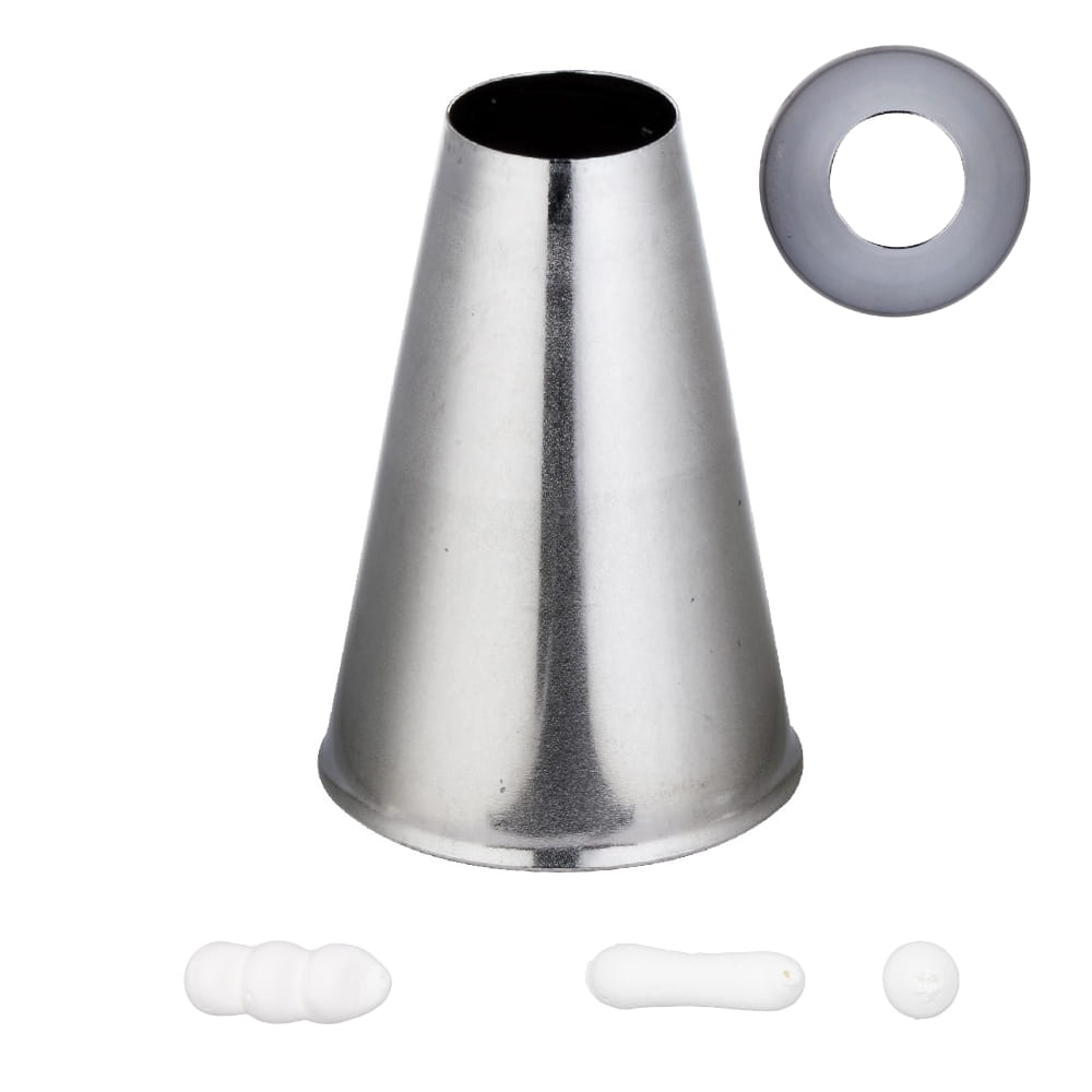 Tylka cukiernicza ze stali nierdzewnej od renomowanej marki Thermohuaser. Może być używana bezpośrednio ze wszystkim rękawami cukierniczymi lub z adapterami firmy Theromohauser w rozmiarze L. Doskonale sprawdzi się do precyzyjnego dekorowania ciasteczek, babeczek, muffinków, tortów, deserów czy dań. Ta okrągła tylka posiada średnicę wylotu 14 mm. To duża końcówka o wysokości 48 mm.