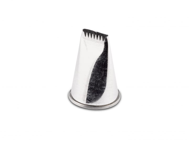 Tylka cukiernicza, czyli metalowa końcówka do dekorowania za pomocą rękawów i worków cukierniczych. Doskonale sprawdzi się do precyzyjnego dekorowania ciasteczek, babeczek, muffinków, tortów, wypieków, deserów czy dań. Ta płaska tylka posiada szerokość wylotu 12 mm i 6 ząbków. Może być używana bezpośrednio z każdym rękawem lub workiem cukierniczym. Tylka ze spłaszczonym otworem i ząbkami do wykonania splotów koszykowych, pasków, szlaczków oraz falbanek.
