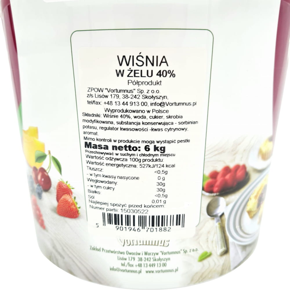 Wiśnia 40% owoce w żelu Vortumnus 6kg
