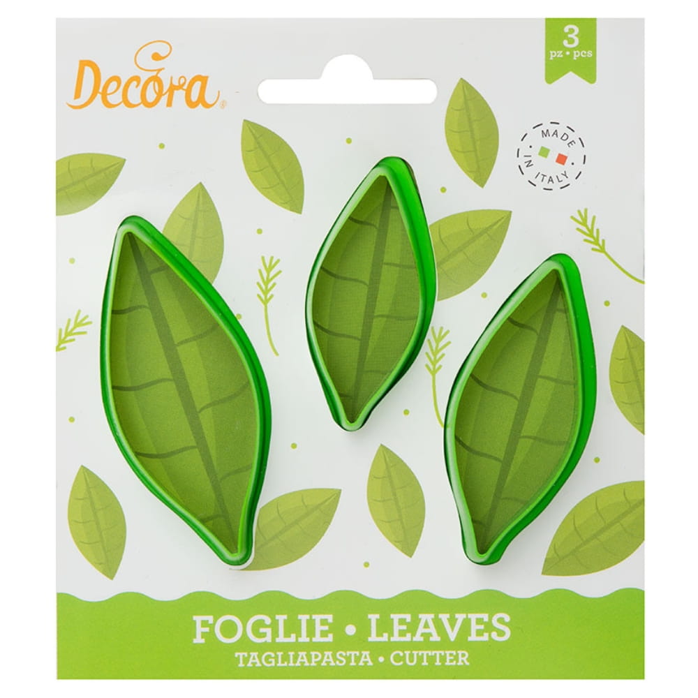 Zestaw wykrojników do wycinania podłużnych listków z masy cukrowej. Foremki mają z jednej strony ostry brzeg, z drugiej bezpieczny, wyprofilowany rant do naciskania. Wykonane z higienicznego i łatwego do utrzymania w czystości tworzywa przystosowanego do kontaktu z żywnością. Są naprawdę ostre: poradzą sobie nawet ze schłodzona masą cukrową. W skład zestawu wchodzą 3 foremki wykrojniki, pozwalające stworzyć liście różnej długości. Do wygodnego modelowania liści i całych kwiatów polecamy gąbki do modelowania, które można kupić TUTAJ.