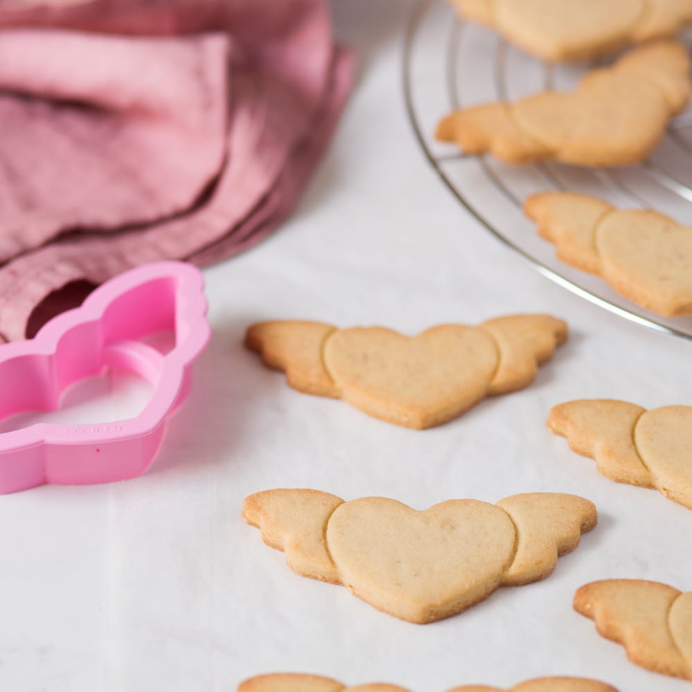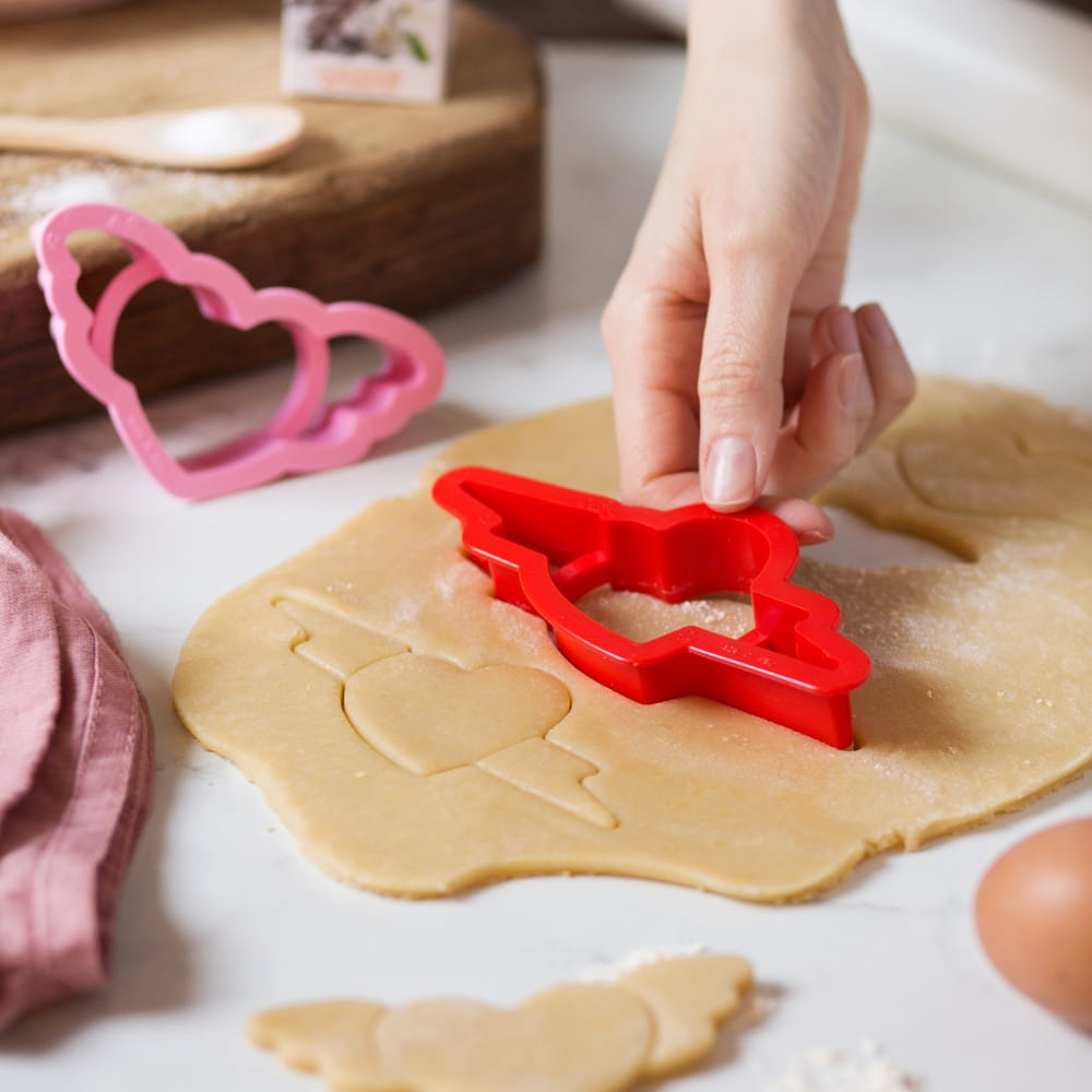 Wykrojniki serduszka do wycinania, odciskania wspaniałych uskrzydlonych serduszek Love. W opakowaniu 2 wzory: serce ze strzałą, błyskawicą o wymiarach: 12 × 5 × 2,2 cm i serce ze skrzydłami o wymiarach: 10 × 5 × 2,2 cm. Foremki mają z jednej strony ostry brzeg, z drugiej bezpieczny, wyprofilowany rant do naciskania. Wykonane z higienicznego i łatwego do utrzymania w czystości tworzywa przystosowanego do kontaktu z żywnością. Są naprawdę ostre: poradzą sobie nawet ze schłodzona masą cukrową. Zestaw pozwala uformować ciasteczka, ozdoby z masy cukrowej, ciastoliny, marcepanu, czekoladki lub pierniczki. Można też tworzyć kolorowe dekoracje z masy cukrowej lub wycinać kształty w upieczonym cieście! Stworzone w ten sposób walentynkowe dekoracje są idealne do malowania, pokrywania, ozdabiania i lukrowania.