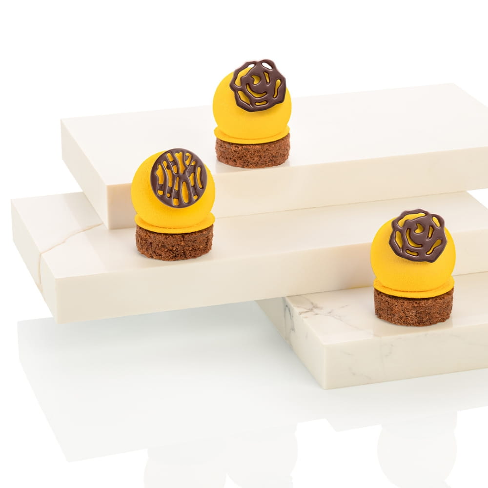 - Efektu zamszu na elementach czekoladowych takich jak: figury, dekoracje, tabliczki, praliny),