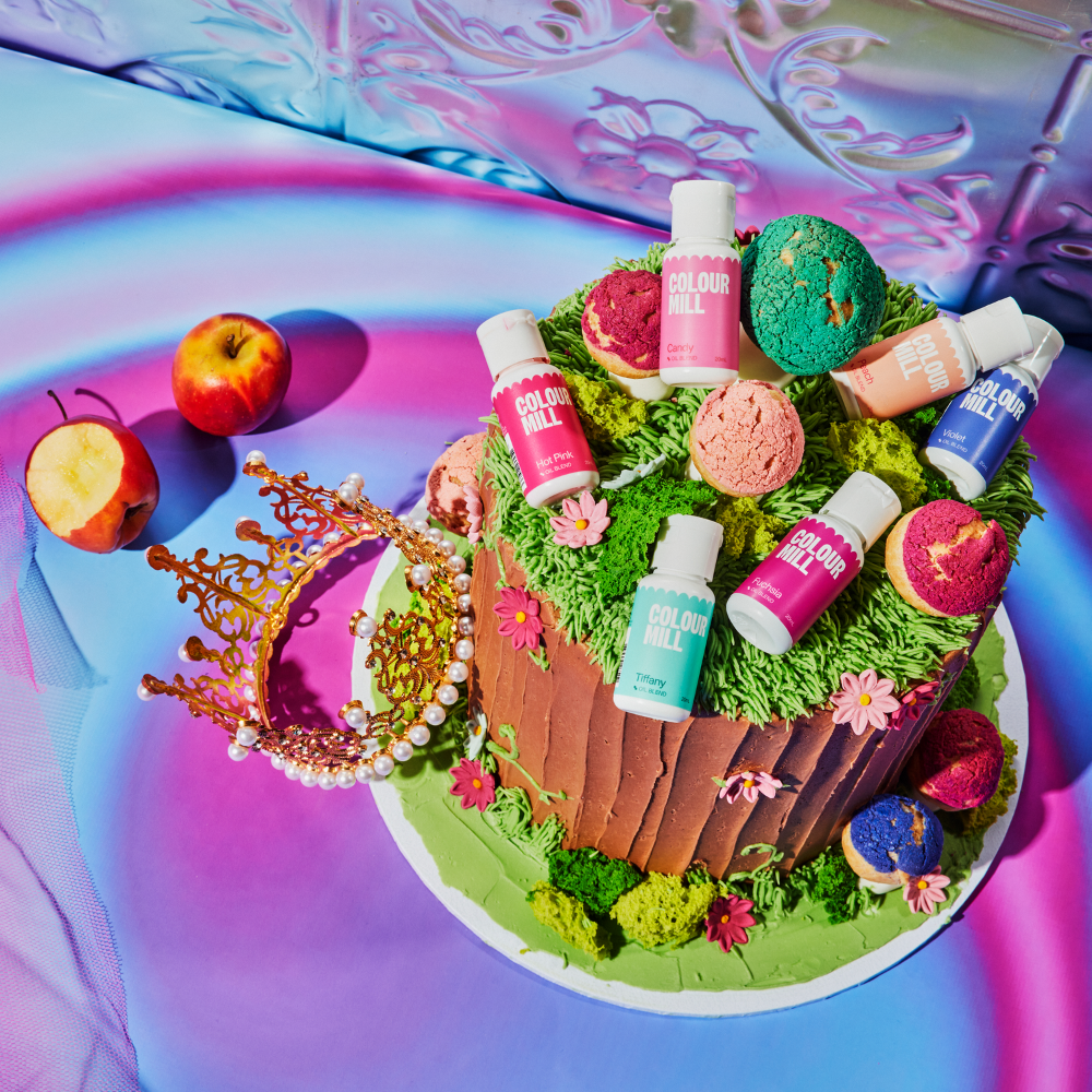 Barwniki spożywcze na bazie oleju w postaci gęstego płynu. W skład zestawu Fairytale wchodzi 6 bajkowych i cudownych odcieni, każdy po 20 ml. Przywodzą na myśl cudowne baśniowe barwy, idealne na wyjątkowy tort. Najwyższej jakości barwniki olejowe nowej generacji: wszystkie wodne składniki zostały usunięte i zastąpione przyjaznymi dla pieczenia olejami. Barwniki zastąpiono wysokiej jakości pigmentami, które dodatkowo poddano procesowi mikromielenia. Barwniki są dzięki temu niesłychanie jednolite i bardzo gładkie, idealnie rozprowadzają się w tłustych masach: bez smug, ziaren i drobinek nierozrobionego pigmentu. Olejowe barwniki Colour Mill nie mają sobie równych w barwieniu mas tłustych! Idealne do czekolady, pralin, kremu maślanego, bezy szwajcarskiej, surowego ciasta, ganaszy, kremów śmietanowych, masy jajecznej, wszelkiego rodzaju polew. Sprawdzą się także w masach cukrowych, modelarskich, lukrze, marcepanie, mieszankach do ciast czy izomalcie. Zapewniają oszałamiające kolory, które dzięki specjalnej formule nie blakną!