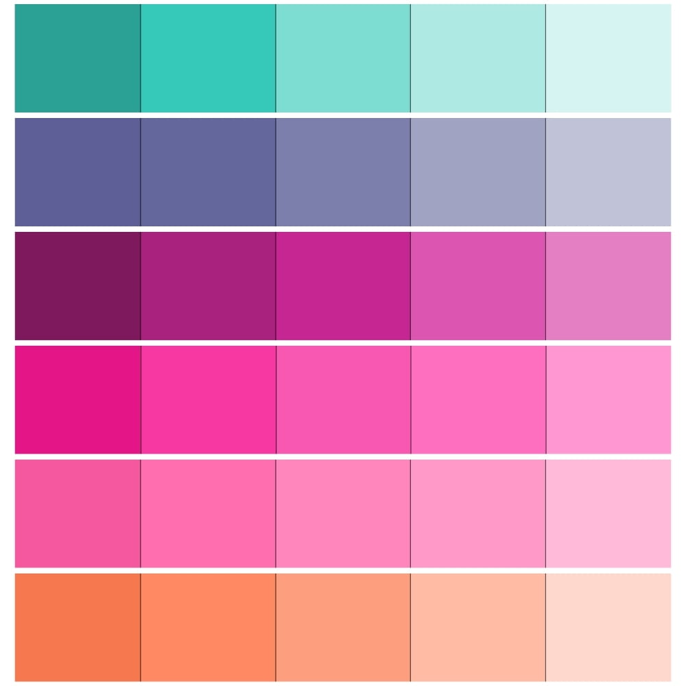 - Kolory: tiffany, violet, fuchsia, hot pink, candy, peach