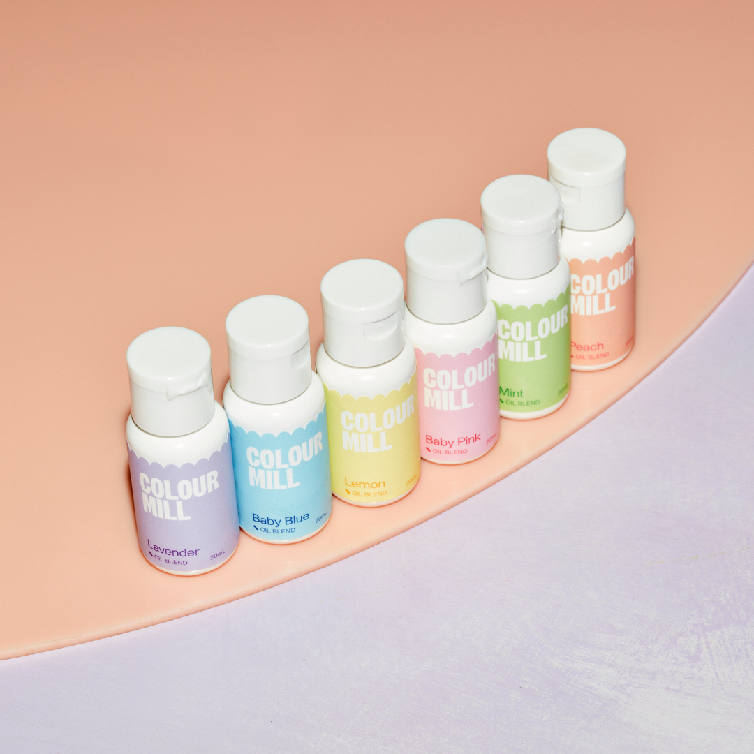 Barwniki spożywcze na bazie oleju w postaci gęstego płynu. W skład zestawu Pastel wchodzi 6 radosnych pastelowych odcieni, każdy po 20 ml. Najwyższej jakości barwniki olejowe nowej generacji: wszystkie wodne składniki zostały usunięte i zastąpione przyjaznymi dla pieczenia olejami. Barwniki zastąpiono wysokiej jakości pigmentami, które dodatkowo poddano procesowi mikromielenia. Barwniki są dzięki temu niesłychanie jednolite i bardzo gładkie, idealnie rozprowadzają się w tłustych masach: bez smug, ziaren i drobinek nierozrobionego pigmentu. Olejowe barwniki Colour Mill nie mają sobie równych w barwieniu mas tłustych! Idealne do czekolady, pralin, kremu maślanego, bezy szwajcarskiej, surowego ciasta, ganaszy, kremów śmietanowych, masy jajecznej, wszelkiego rodzaju polew. Sprawdzą się także w masach cukrowych, modelarskich, lukrze, marcepanie, mieszankach do ciast czy izomalcie. Zapewniają oszałamiające kolory, które dzięki specjalnej formule nie blakną!