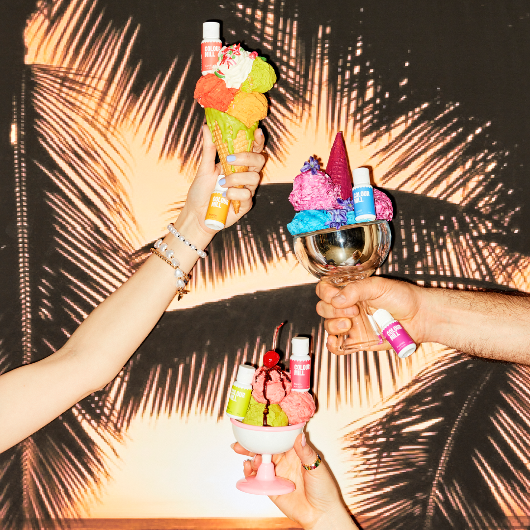 Świat na ich punkcie oszalał! Barwniki olejowe Colour Mill to przeogromna paleta żywych, nasyconych kolorów, które są odporne na blaknięcie. Wypełnione po brzegi pigmentem barwniki uwielbiają wszelkie tłuste masy i łączą się z nimi niespodziewanie gładko. Każdy barwnik jest bardzo ekonomiczny i pozwala uzyskać różne odcienie w zależności od nasycenia masy. Od pasteli aż po bardzo głębokie kolory. Szczerze radzimy nie śpieszyć się podczas barwienia: pigmenty kryją potężną moc. Najlepiej je dawkować stopniowo. Co najważniejsze barwniki można ze sobą dowolnie łączyć. Barwniki Colour Mills są wegańskie, pozbawione alergenów, wolne od wypełniaczy oraz gum i nie zawierają substancji słodzących. To barwniki, na jakie zasługują Twoje wypieki!