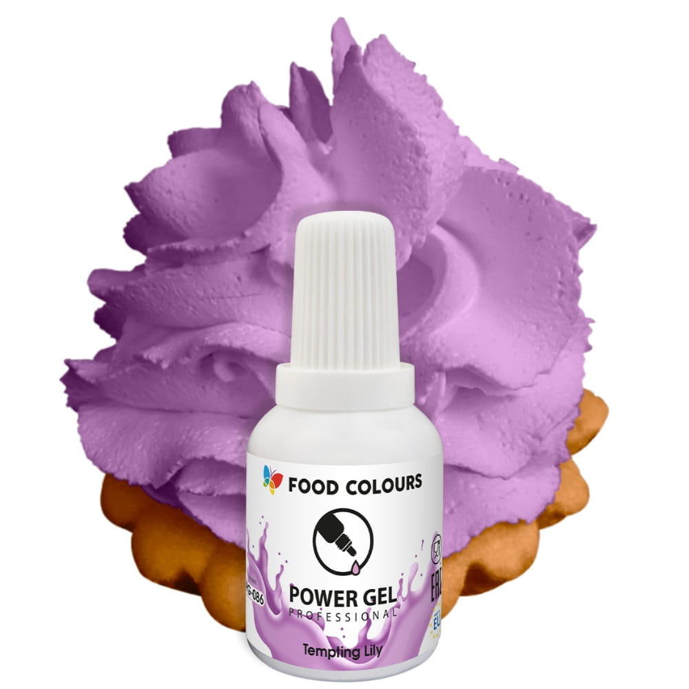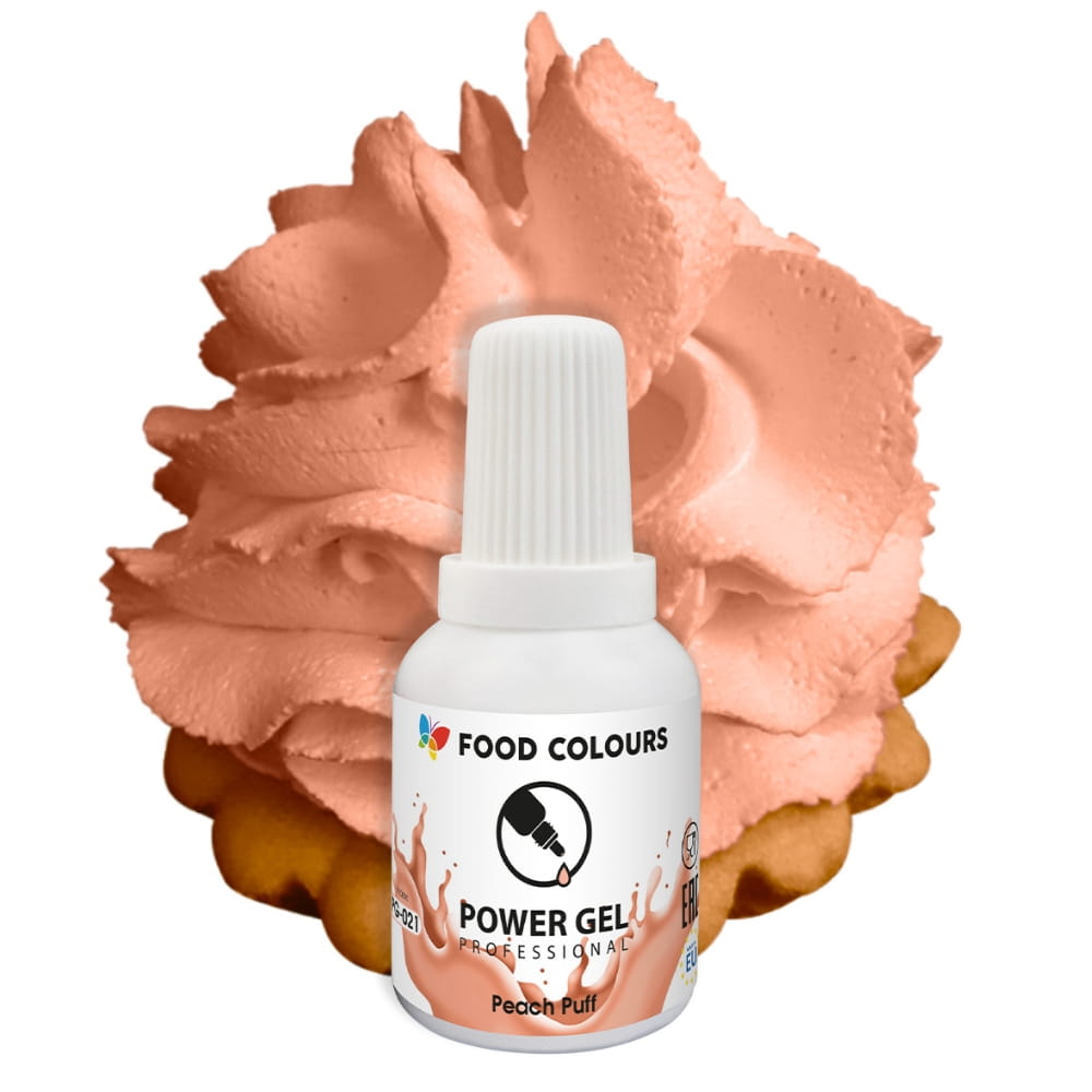 Barwniki w żelu z linii PowerGel od polskiego producenta Food Colours. Barwniki są jadalne i występują w bogatej palecie kolorów, opracowanych według nowatorskich receptur. Dodatkowo można je ze sobą mieszać. Nie wpływają na konsystencję, smak ani zapach produktów. Formuła żelu umożliwia równomierne barwienie i uzyskanie odpowiedniego koloru, bez rozrzedzania masy. Są bardzo wydajne: już niewielka ilość gwarantuje mocne, intensywne odcienie niemożliwe do uzyskania z jakimkolwiek innym barwnikiem. Na szczęście wygodna buteleczka z zakraplaczem umożliwia precyzyjne dawkowanie.