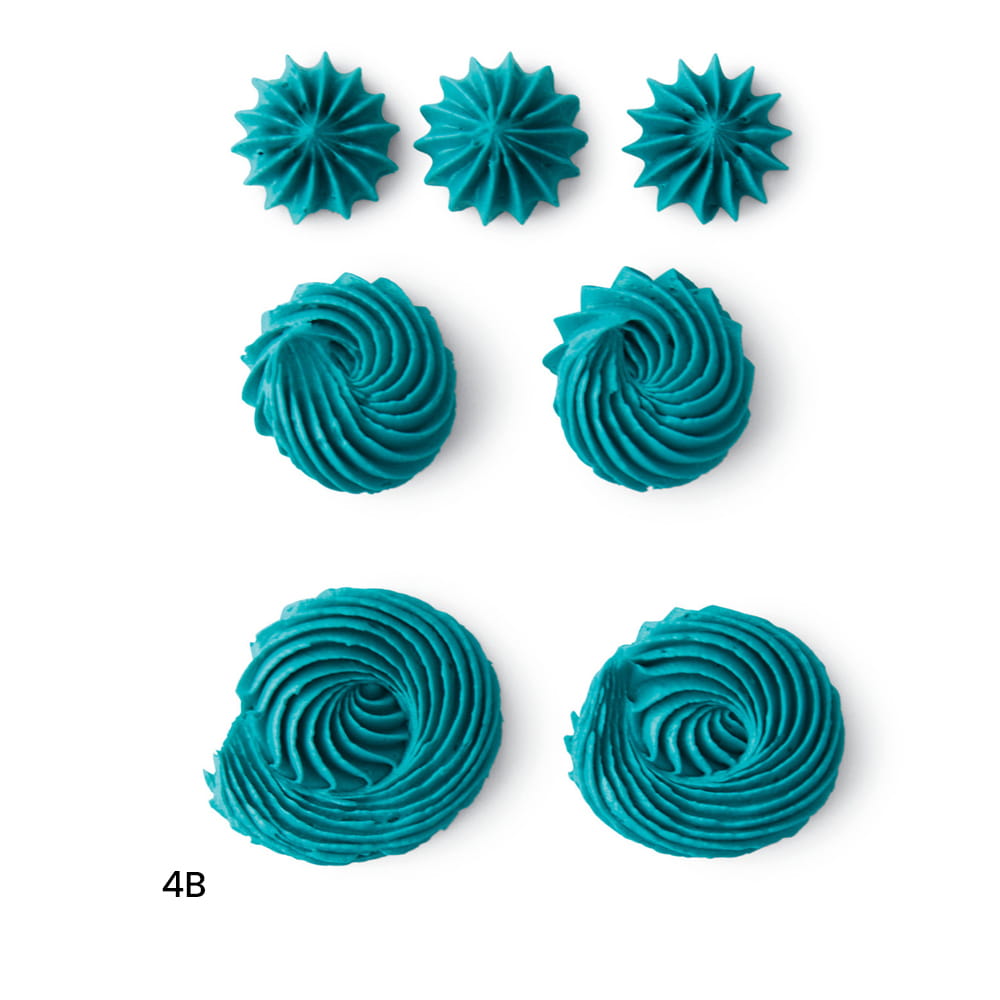 - Tylka #4B - duża, otwarta gwiazda — do robienia gwiazdek, muszelek i formowania różnorodnych kwiatów, sprawdzi się do tworzenia rantów w kształcie muszli, zygzaków, lin.