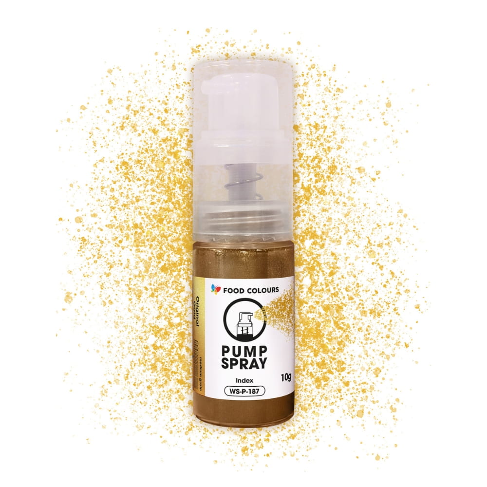 Złoty pyłek w postaci suchego sprayu, który tworzy efekt metalicznego połysku na dekorowanych powierzchniach. Idealny produkt do spektakularnego wykończenia cukierniczych dzieł. Można nim dekorować powierzchnie i masy, kremy, torty, marcepan, formy do pralin, dekoracje cukrowe, żele, czekoladki, dekoracje cukrowe i praktycznie wszystkie produkty cukiernicze. Dzięki pompce jest bardzo łatwy i wygodny w stosowaniu, także w domowych warunkach.