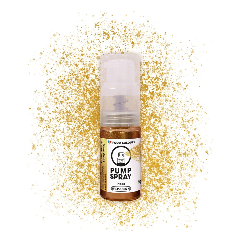 Złoty pyłek w postaci suchego sprayu, który tworzy efekt metalicznego połysku na dekorowanych powierzchniach. Shimmering to drobny satynowy pyłek, gdzie blask nadają bardzo drobno zmielone drobinki. Idealny produkt do spektakularnego wykończenia cukierniczych dzieł. Można nim dekorować powierzchnie i masy, kremy, torty, marcepan, formy do pralin, dekoracje cukrowe, żele, czekoladki, dekoracje cukrowe i praktycznie wszystkie produkty cukiernicze. Dzięki pompce jest bardzo łatwy i wygodny w stosowaniu, także w domowych warunkach.