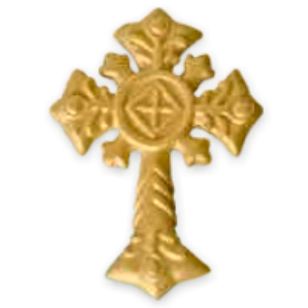 Komunijna figurka cukrowa w kształcie zdobionego krzyżyka o złotym kolorze. Ta delikatna ozdoba idealnie współgra z bielą komunijnych tortów. To wspaniały pomysł na dekorację komunijnych wypieków i słodkości. Krzyżyk będzie wyglądał pięknie jako ozdoba wyjątkowych, komunijnych babeczek, muffinek, deserów, monoporcji. Ta lekka dekoracja zachwyca błyszczącym złotem, tak pięknie pasującym do komunijnej bieli! Cudownie komponuje się z innymi figurkami i dekoracjami.