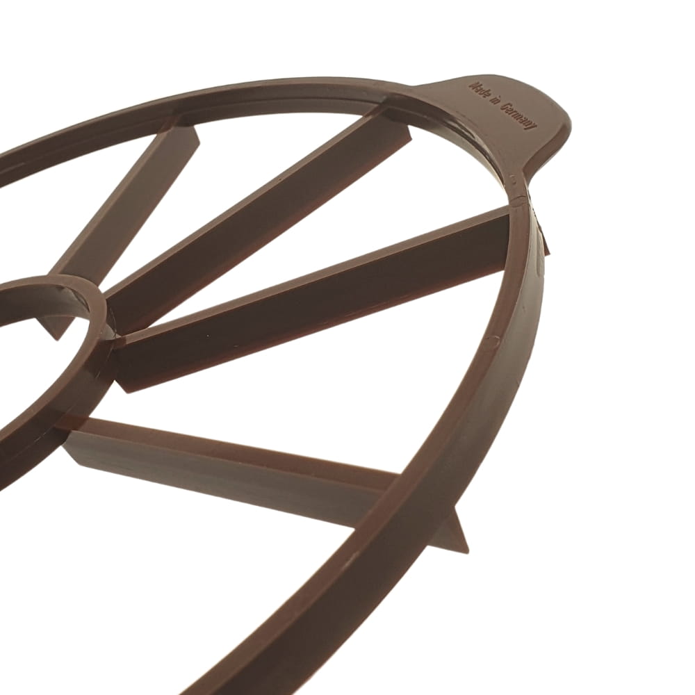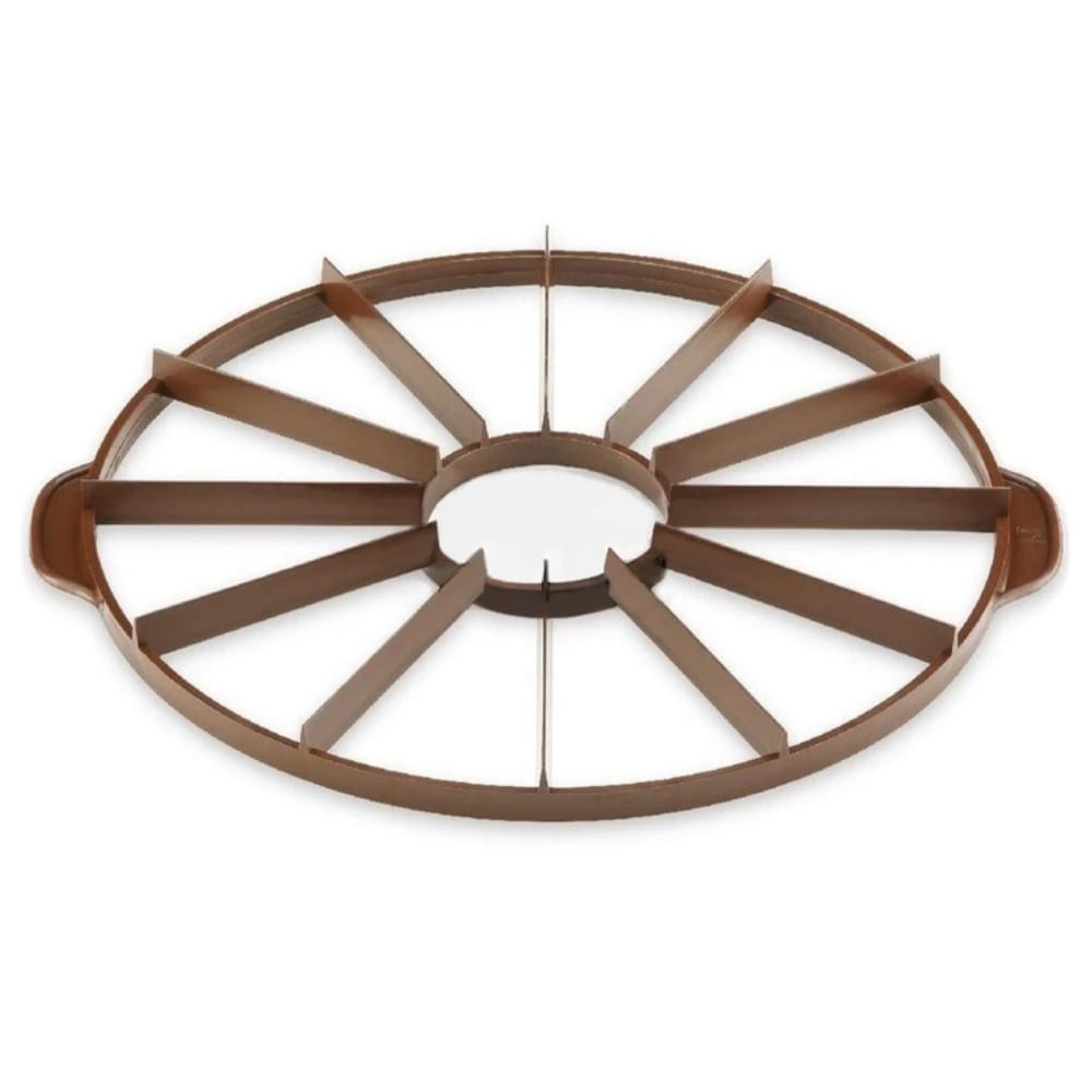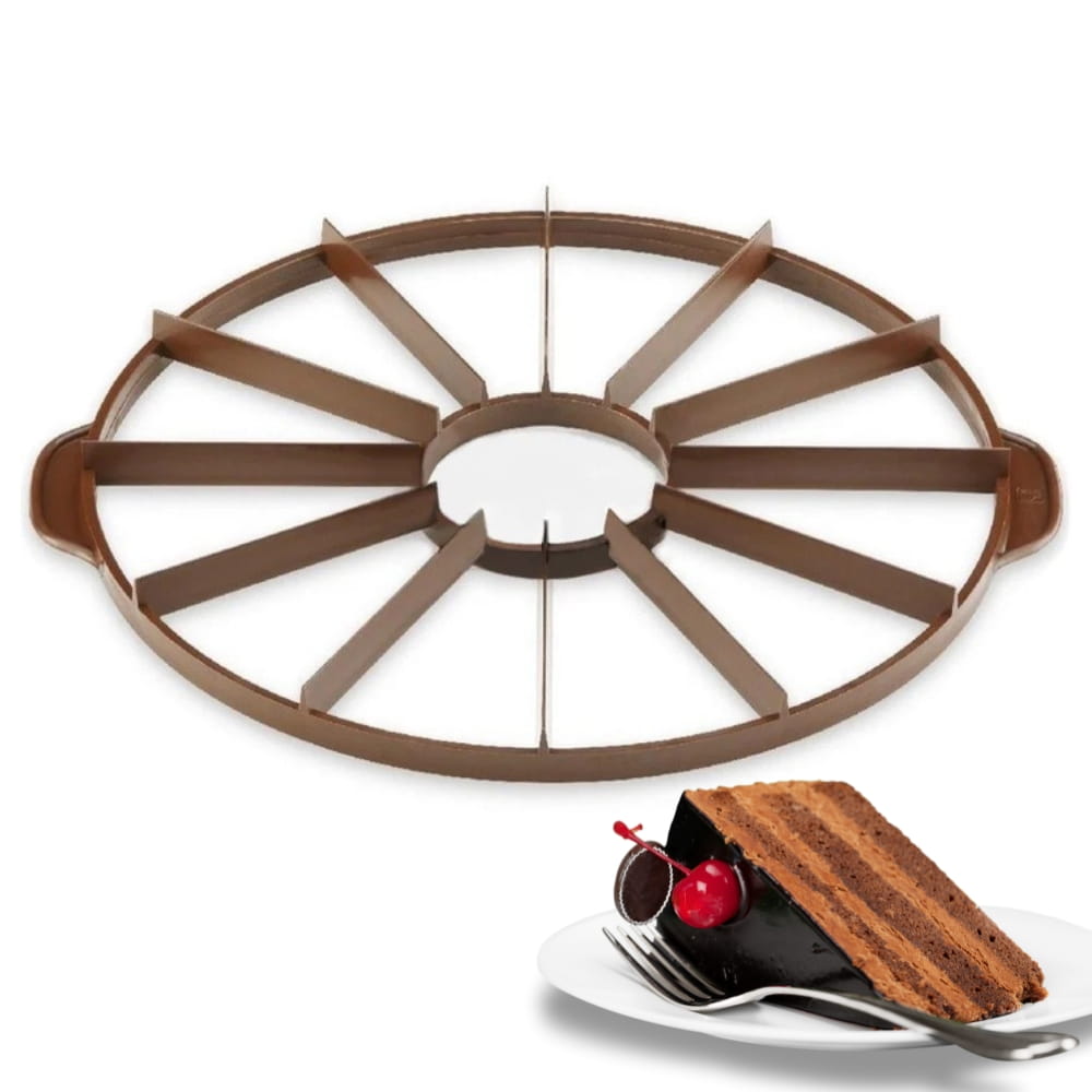 Znacznik do tortów to praktyczne narzędzie, ułatwiające podział okrągłego ciasta na 12 równych porcji. Zaopatrzony w 2 praktyczne uchwyty, jednostronny. Wykonany z odpornego tworzywa sztucznego w kolorze brązowym. Polipropylen jest bezpieczny w kontakcie z żywnością, gładki, łatwy w czyszczeniu i wytrzymały. Odporny na działanie temperatur w zakresie od 0°C do +105°C. Idealne rozwiązanie do porcjowania i dekoracji tortów, dzięki niemu każdy stworzy idealnie równe i jednorodne kawałki.